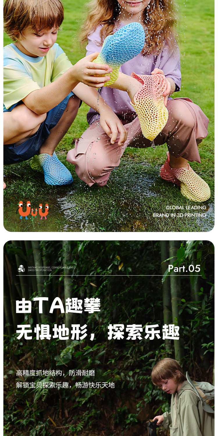 星世线STARAY童鞋渐变色洞洞鞋溯溪透气双拼镂空3d打印鞋